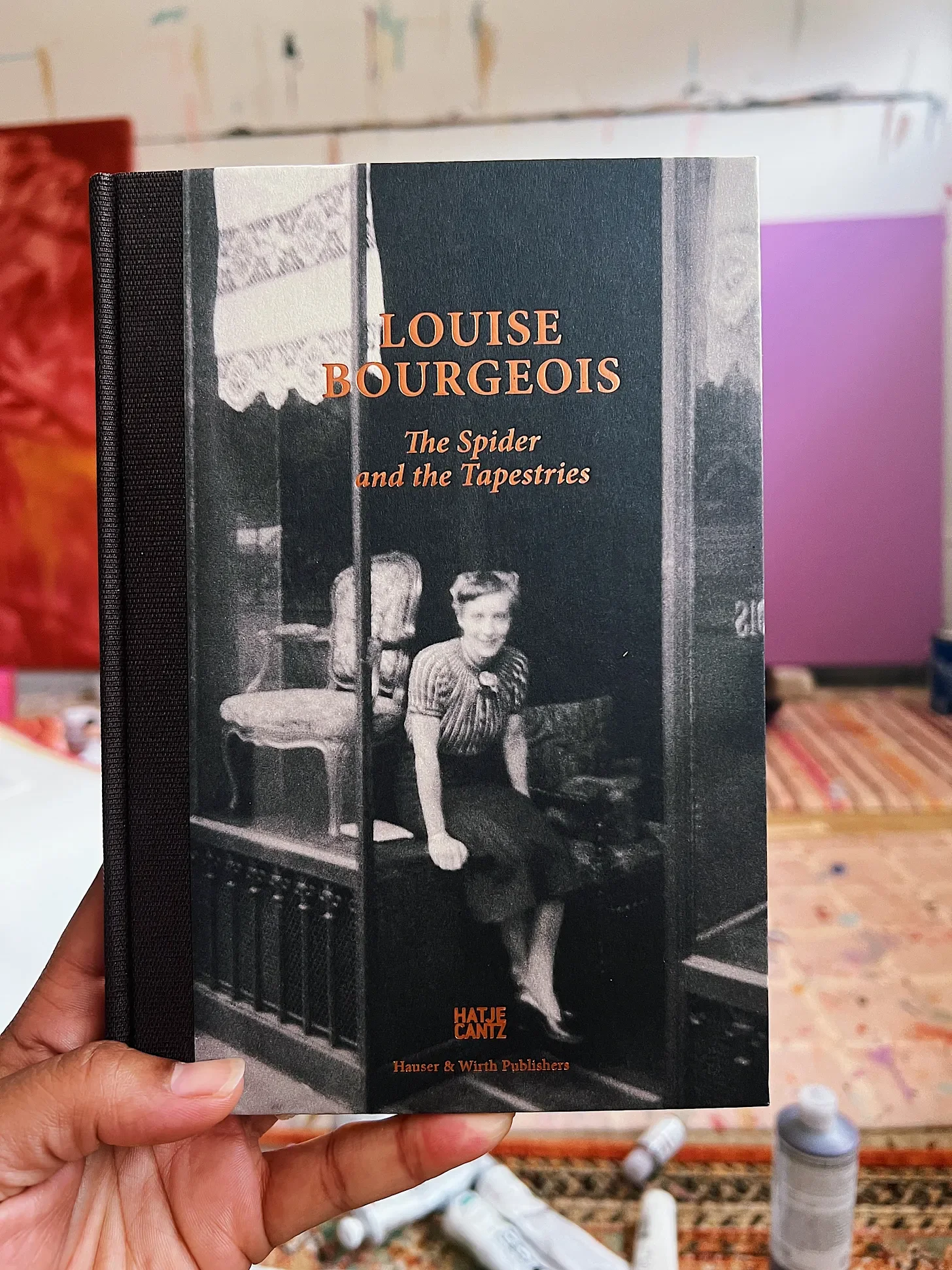 another—albeit much smaller— book about louise bourgeois work that has served as an introduction to other aspects of her creative practice: her writing. as the title suggests, this small book pairs her spider motif with her tapestry and needlepoint work. it highlights how her family’s tapestry restoration business informed her own practice. her writings touch on themes of repair, restoration, and the relationship between her and her mother and provide an intimate context to the works featured in the book. there are also some archival images and papers. it’s less than 100 pages and feels more like a journal than a traditional art book. well worth having.