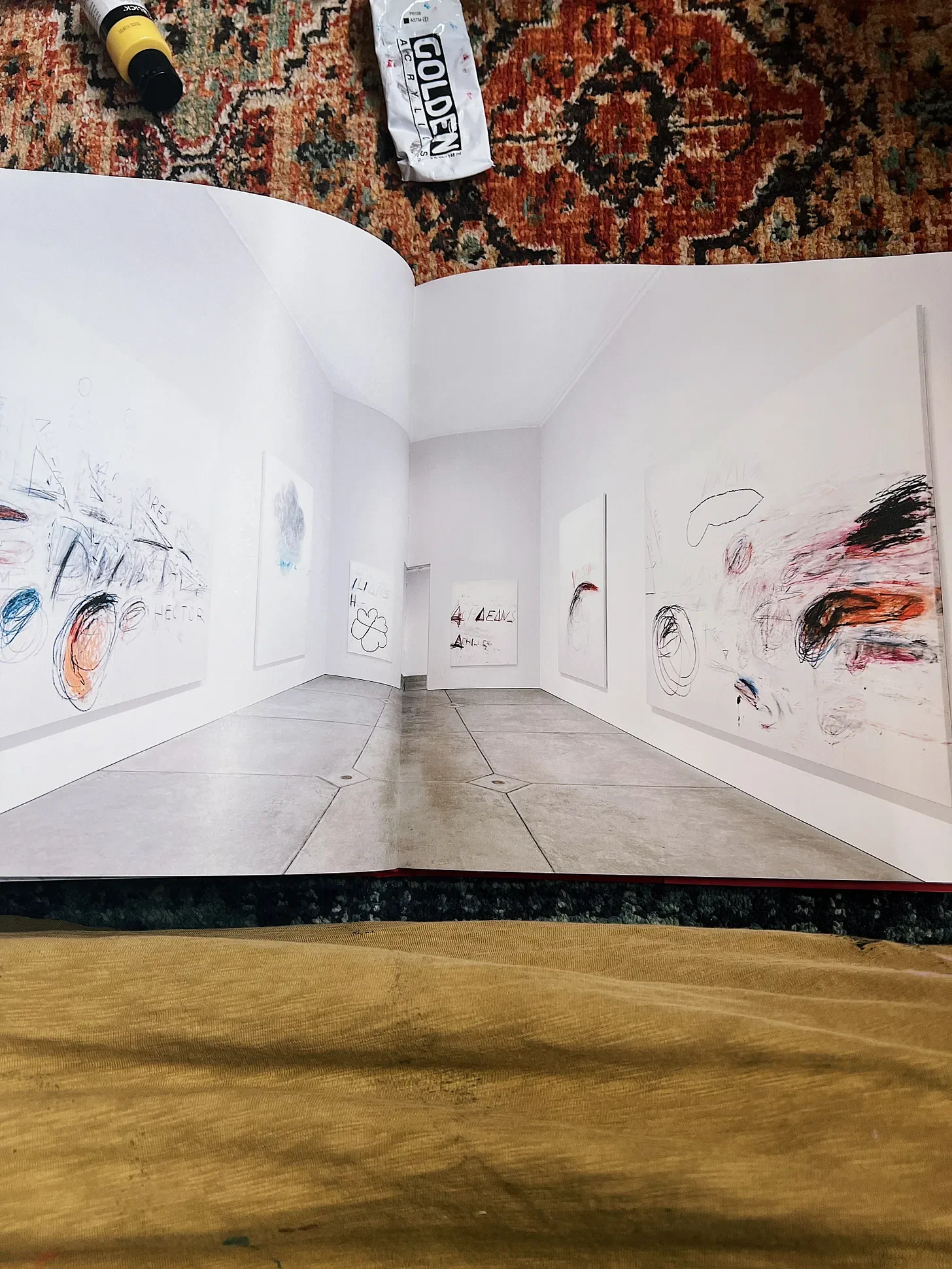 my family gifted me this one for my 40th birthday last december, at the conclusion of our visit to the philadelphia museum of art, where several of the works from fifty days at illiam are on view as part of the museum’s permanent tribute to the artist. while there are others by twombly that i love, this series of paintings is among my absolute favorites of his. i distinctly remember my first time seeing them; i was still relatively new to visiting museums and seeing fine art in person, as this was one aspect of arts & culture i was not exposed to growing up. however, the first time i encountered these works at pma years ago, i remember having to sit down to take them all in. there’s an emotional weight to them that i found intense but also quite liberating in its expression. very…mars type of energy (if you’re an astrology nerd, then you know what i mean), which makes sense because these paintings are about the trojan war. these are paintings that made me yearn to paint big and messy and with abandon when i first encountered them, and every time i see them in person, i walk away with this feeling of emotional expansiveness that helps me be a bit more fearless in the studio. this book is about those paintings, twombly’s process of painting them, and includes shots of his studio in italy where they were created. i find a lot of books on twombly to be dry, if i’m being honest, but this one intrigues me in a way i’ve enjoyed.